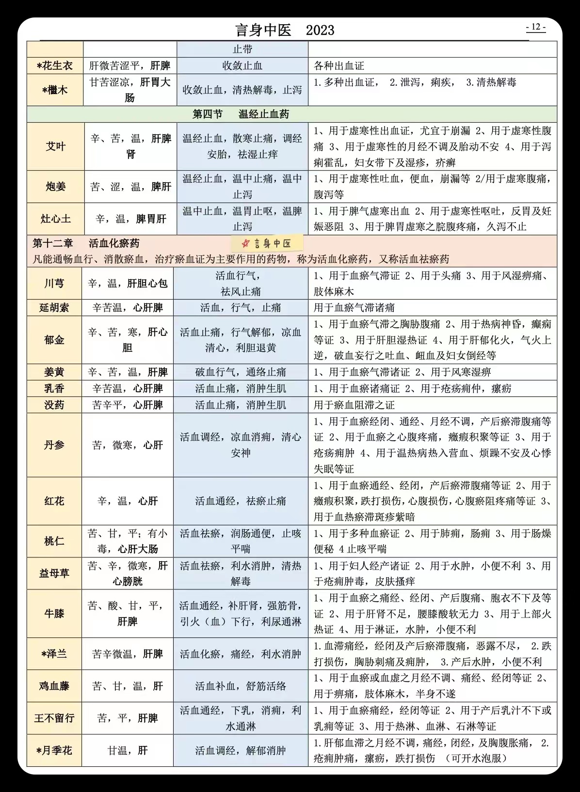 中药材总结表